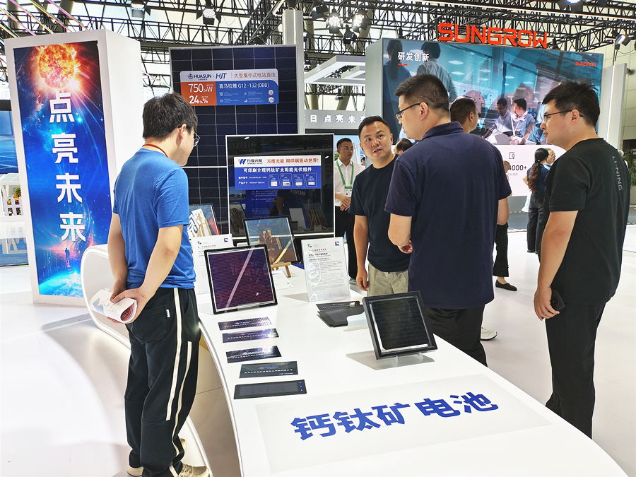 大會(huì)現(xiàn)場,華晟新能源研發(fā)的異質(zhì)結(jié)-鈣鈦礦疊層電池吸引了觀眾駐足圍觀。該電池量產(chǎn)轉(zhuǎn)換效率可超過30%,是“光儲(chǔ)平價(jià)”及“綠氫平價(jià)”的關(guān)鍵性技術(shù)突破點(diǎn)之一。華晟已經(jīng)成功實(shí)現(xiàn)M6尺寸大面積鈣鈦礦層的均勻制備,正在進(jìn)行50MW疊層中試線的建設(shè)。該公司工作人員介紹,異質(zhì)結(jié)-鈣鈦礦疊層技術(shù)是光伏產(chǎn)業(yè)的第四次革命,是利用異質(zhì)結(jié)電池的膜層結(jié)構(gòu)匹配優(yōu)勢與鈣鈦礦進(jìn)行疊層,具有轉(zhuǎn)換效率高、匹配性好、工藝流程簡單和鍍膜面積小的優(yōu)勢。