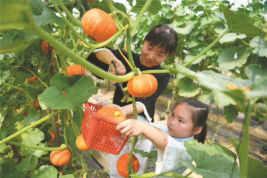 6月21日,游客在合肥市肥西縣花崗鎮現代農業示范區瓜果蔬菜種植基地采摘。近年來,該鎮積極推進農業產業和鄉村旅游融合發展,打造以休閑體驗、生態采摘為特色的休閑觀光農業,助力鄉村振興。新華社記者 劉軍喜 攝