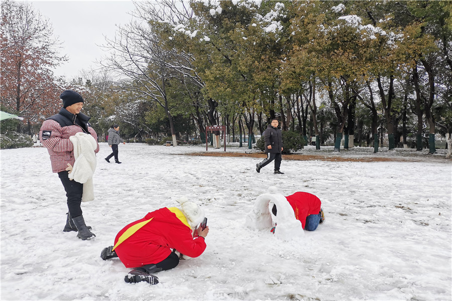 本網訊(記者 史洪芳)2月7日,虎年正月初七,合肥大雪紛飛。逍遙津公園、包公園一派銀裝素裹,廣大市民紛紛走出家門,和親朋好友在公園觀賞如畫雪景,堆雪人、打雪仗、滾雪球……熱鬧非凡,很多人用手機拍照片或短視頻留下對雪的美好記憶。