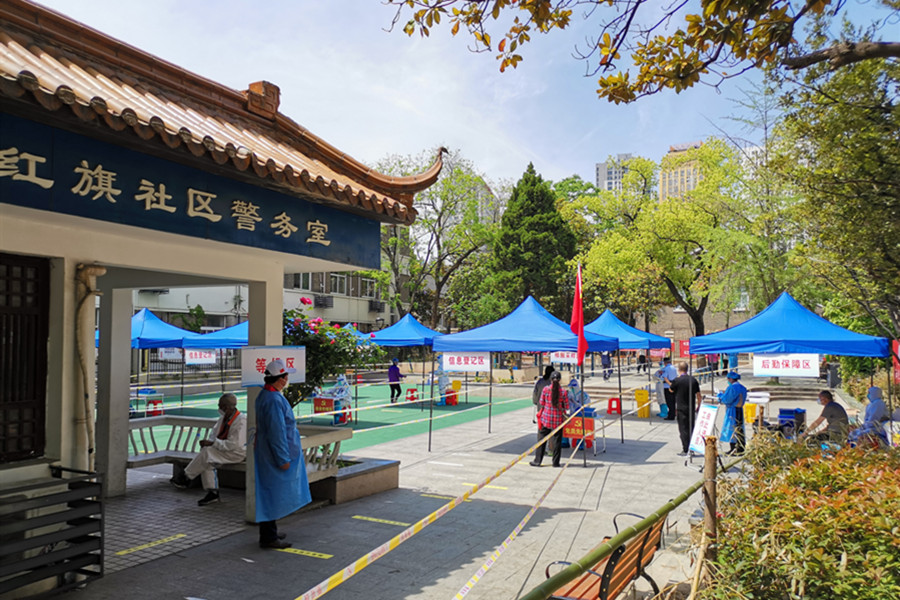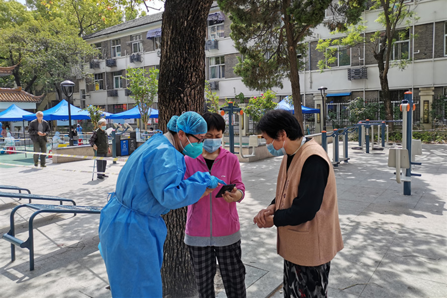 廬陽區紅旗社區核酸檢測點,工作人員在檢查安康碼和行程碼。