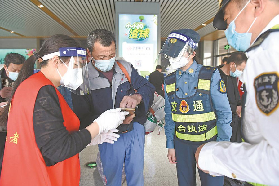 5月2日,淮南高新區青年志愿者在淮南南站開展疫情防控工作。 特約攝影 陳彬 攝