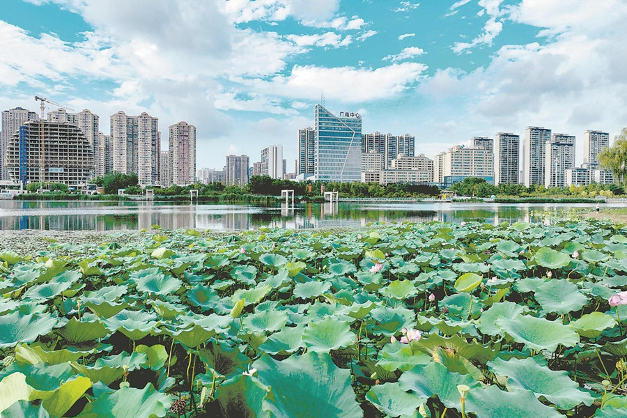 8月21日拍攝的亳州市市政公園生態美景。近年來,亳州市積極踐行“綠水青山就是金山銀山”的生態理念,全面推進河湖長制,持續打好碧水保衛戰,打造市民滿意的宜居城市。