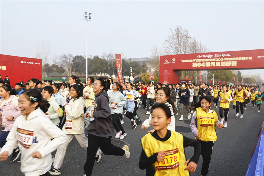 1月1日,安徽省暨合肥市2024年全民健身健步走、第64屆元旦越野賽在合肥市渡江戰役紀念館南廣場鳴槍。活動包含越野賽和健身走兩大項,1萬多名健身愛好者邁開腳步,向著新的一年出發。