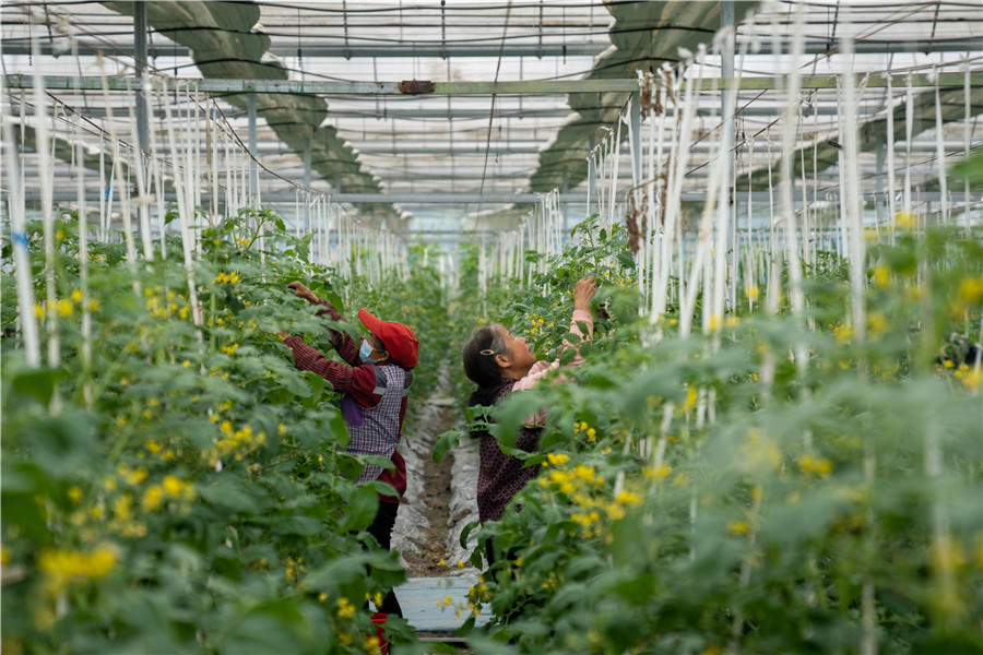 5月5日,正值立夏,合肥市廬陽區(qū)大楊鎮(zhèn)崗西村,菜農(nóng)在管護甜瓜、西紅柿。通訊員 阮雪楓 攝