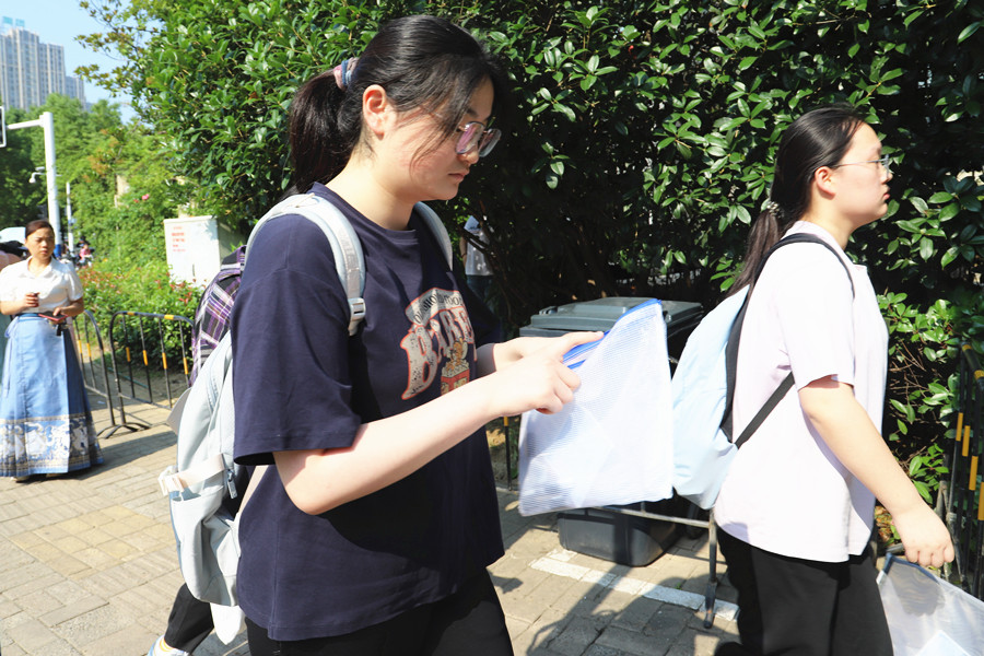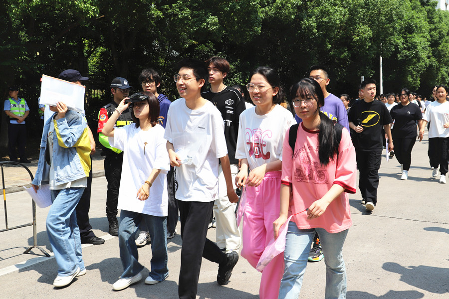 合肥八中考點(diǎn),考生們走出考場。