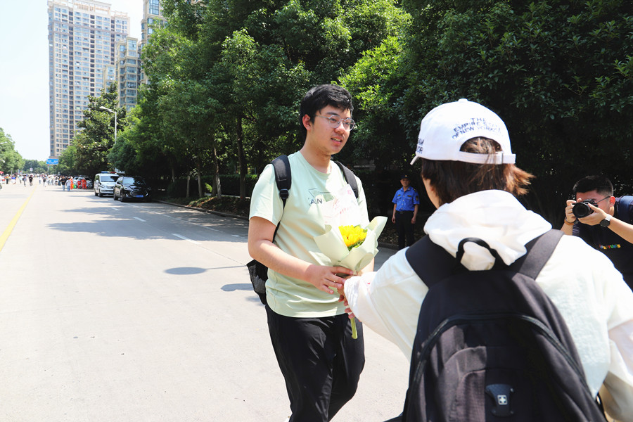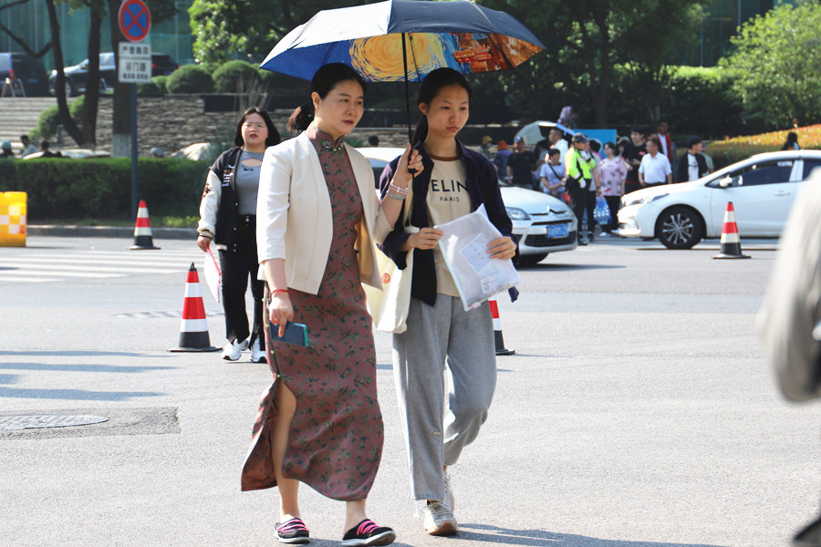 合肥八中考點(diǎn),家長將考生送到考場。