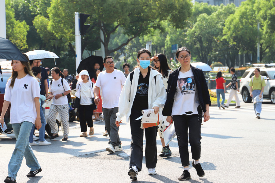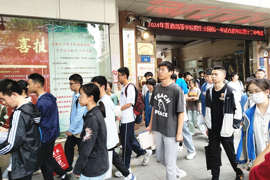 合肥四十二中考點(diǎn),語文考試結(jié)束后,考生們陸續(xù)走出考場。