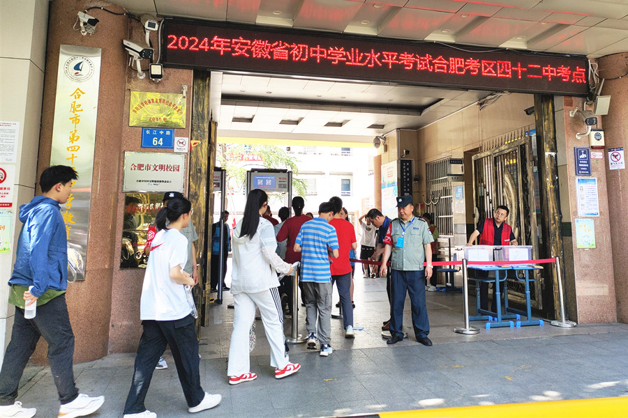 本網(wǎng)訊(記者 史洪芳)6月14日,安徽省2024年初中學(xué)業(yè)水平考試正式拉開帷幕,全省73.72萬(wàn)考生奔赴考場(chǎng)。合肥市多部門聯(lián)動(dòng),在考點(diǎn)周邊設(shè)置休息區(qū)、志愿服務(wù)臺(tái),為考生及家長(zhǎng)提供貼心服務(wù)和免費(fèi)物資。