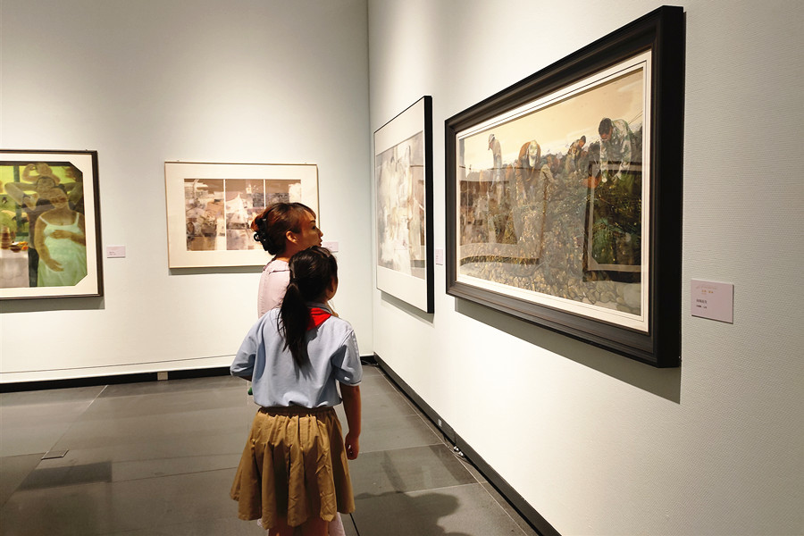 展覽期間,正值暑假,許多孩子在家長的陪伴下走進安徽省美術館,近距離領略藝術的魅力。
