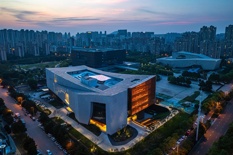 8月26日晚,位于合肥市政務文化新區的合肥美術館在進行亮燈調試。目前,該館主體工程已建設完成,開放后將進一步提升合肥的城市功能和品位,更好地滿足人民群眾對文化生活的新期待。