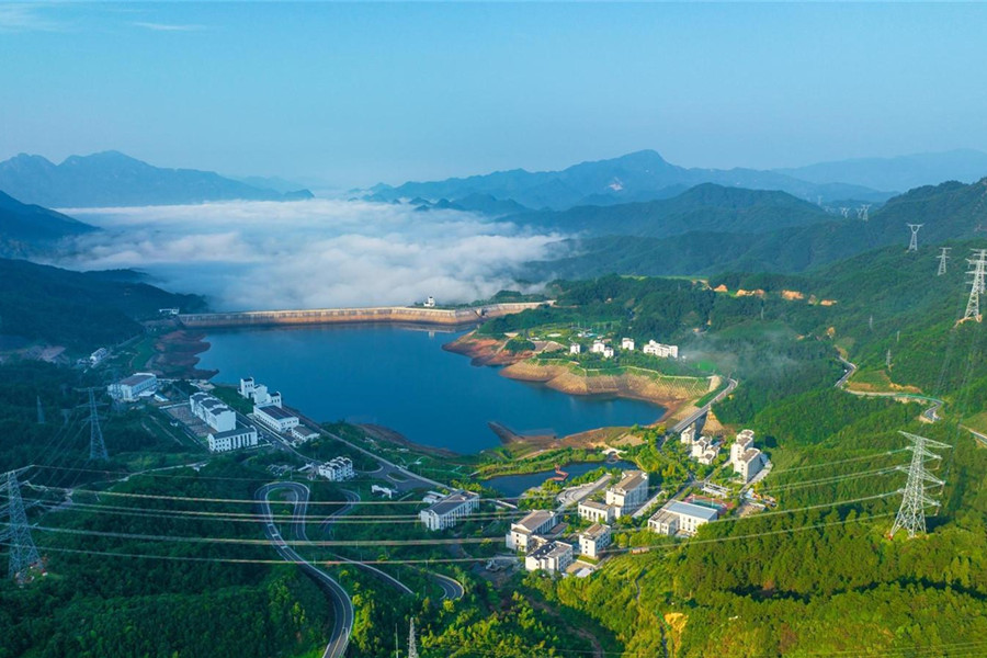 9月1日航拍的績溪抽水蓄能電站下水庫。績溪抽水蓄能電站項目總投資82億元,蓄水庫容2185萬立方米,裝機總容量180萬千瓦,是我省正在運營的最大的抽水蓄能電站。對于保障皖電東送,促進電力行業清潔能源開發具有重要意義。