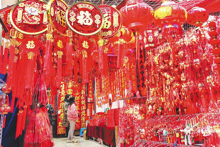 2025年的腳步越來越近,商家們將中國結(jié)、燈籠、蛇年玩偶等新年飾品放在顯眼位置,引得市民紛紛駐足。