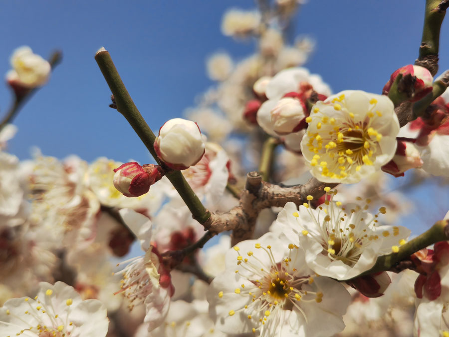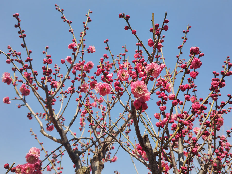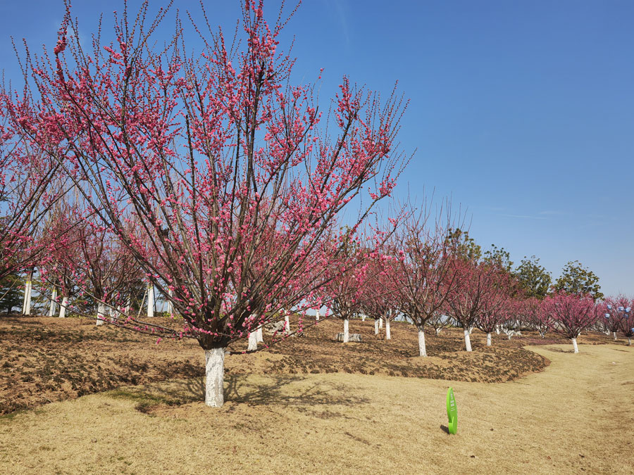 2月18日,天朗氣清,陽光明媚。合肥園博園安徽園內的梅花次第綻放,春意漸濃。(