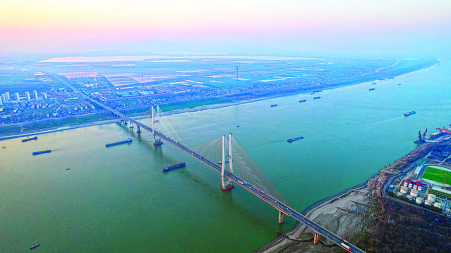 長江銅陵段,一艘艘裝滿貨物的貨輪有序航行,長江“黃金水道”一派繁忙。馬二虎 攝
