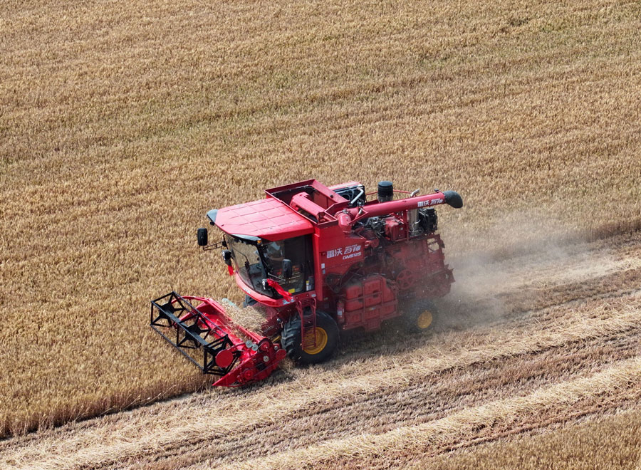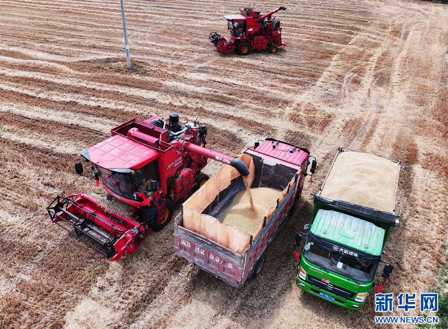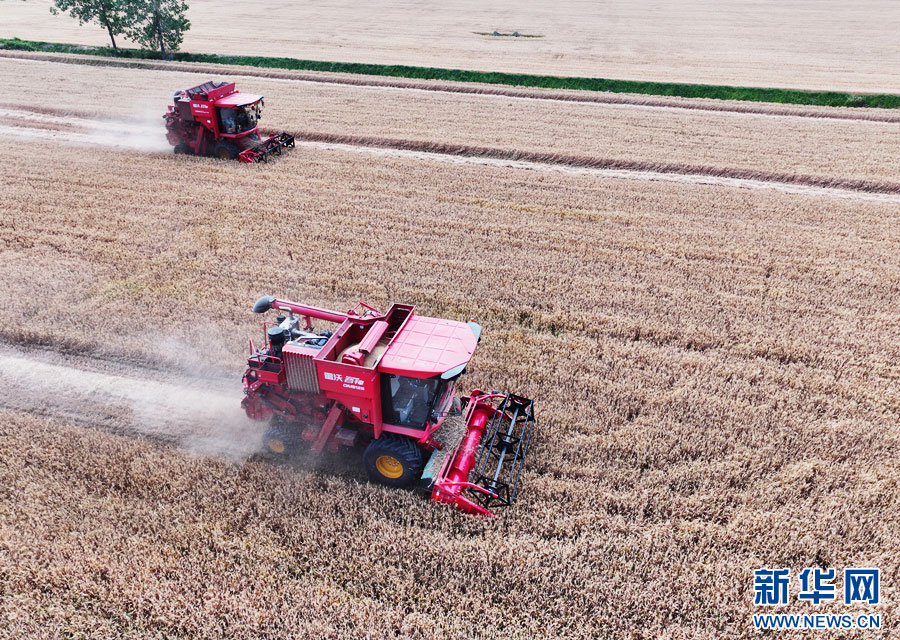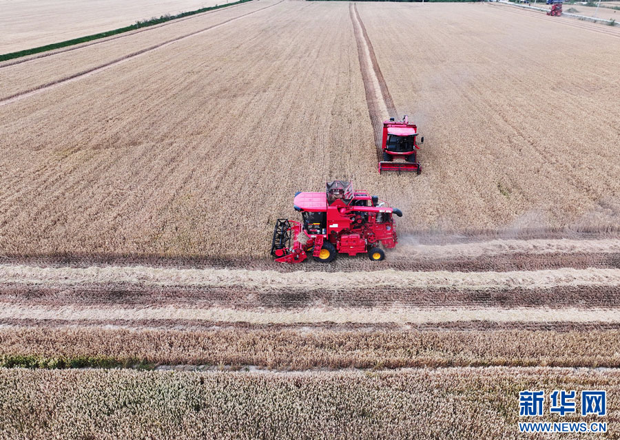 ??眼下,安徽省亳州市蒙城縣的小麥陸續(xù)成熟,當(dāng)?shù)丶皶r(shí)組織各類農(nóng)機(jī)具全力收割小麥,確保夏糧應(yīng)收盡收。新華網(wǎng)發(fā)(胡衛(wèi)國 攝)