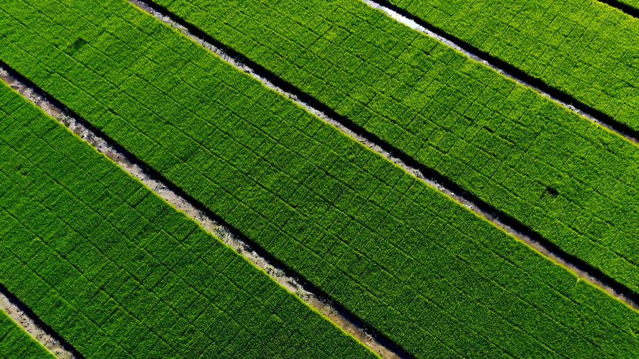 ??盛夏,在安徽省潁上縣王崗鎮(zhèn),農(nóng)人們熟練地拔秧、運(yùn)秧、插秧。微風(fēng)拂過(guò),青綠的秧苗輕輕搖曳,泛起層層綠波,勾勒出一幅寧?kù)o而美好的田園風(fēng)光。(徐紅梅 房子儀)