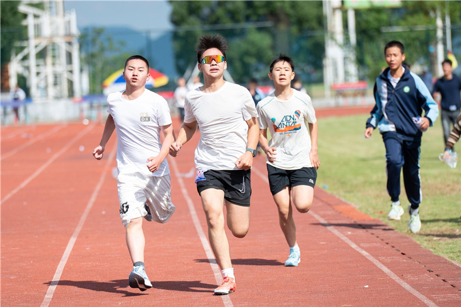 10月23日,池州市九華山風(fēng)景區(qū)中心學(xué)校學(xué)生在參加跑步比賽。當(dāng)天,該校舉辦第十五屆中小學(xué)生秋季運(yùn)動(dòng)會(huì),學(xué)生們?cè)谫悎?chǎng)上奮勇爭(zhēng)先,盡情享受體育運(yùn)動(dòng)帶來(lái)的快樂。本報(bào)通訊員 儲(chǔ)成勝 攝