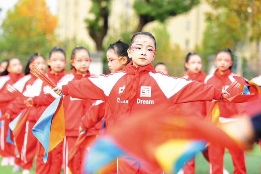 合肥市少兒藝術學校第三小學正在進行大課間展示。吳海波 攝