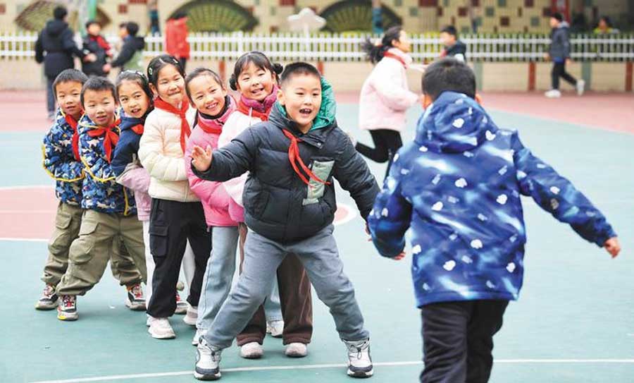 蜀山區(qū)樂農(nóng)新村小學(長江路校區(qū)),小朋友大課間在操場上快樂運動、盡情玩耍。陳三虎 攝