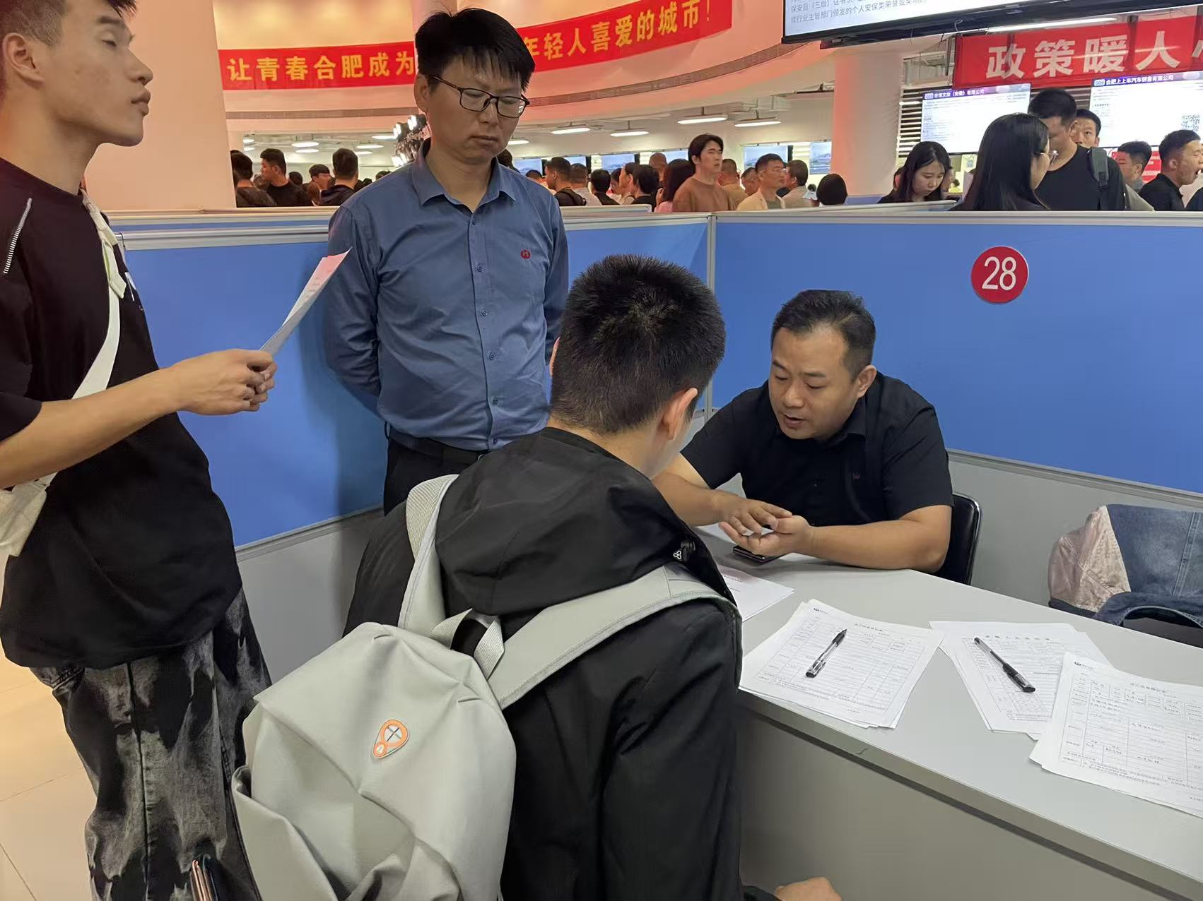 “之前在京東方無塵車間工作過一年,對(duì)裝配技師崗很感興趣,招聘人員說填完表會(huì)盡快安排面試。”2022年9月退役的常先生,在合肥芯碁微電子裝備股份有限公司展位前認(rèn)真填寫求職登記表。他坦言,工資、工作時(shí)長(zhǎng)和雙休是重點(diǎn)考量,希望找到兼顧收入與生活的工作。招聘人員聽完其工作經(jīng)歷后,詳細(xì)介紹了崗位晉升路徑與薪資結(jié)構(gòu)并邀請(qǐng)他參與后續(xù)面試。