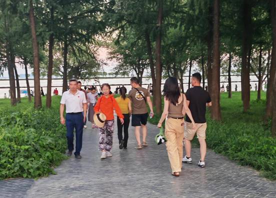 8月17日,恰逢周日,安徽省巢湖湖濱國(guó)家濕地公園里游人如織,有的在促膝長(zhǎng)談,有的在拍照留念,有的在觀賞美景,大家都樂在其中。