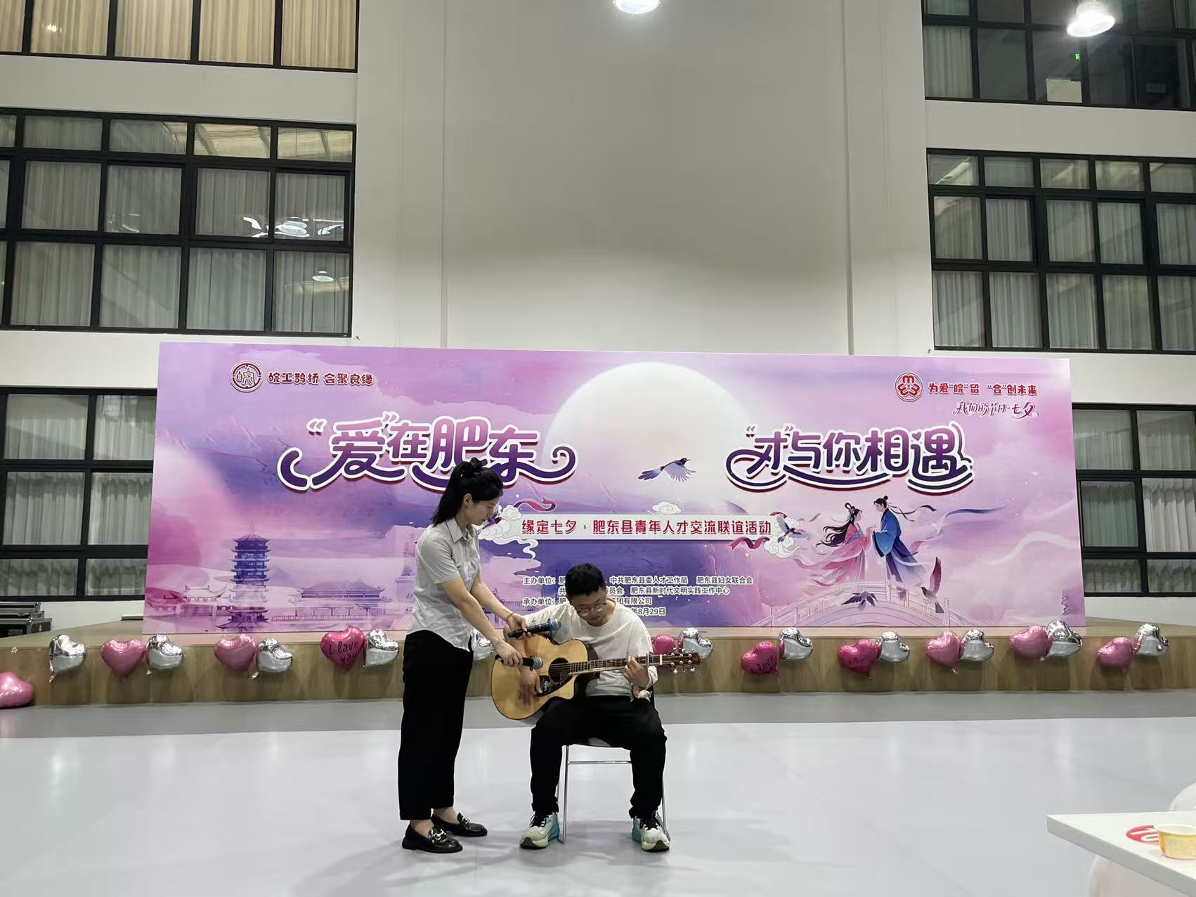 “主持人,我想要一首鄧紫棋的歌”,一名女嘉賓甜甜的聲音剛落,音樂響起,臺下的觀眾便自發跟唱;臺上男嘉賓接唱的張信哲《愛就一個字》,嗓音松弛溫柔,更引來了陣陣掌聲。活動現場,“鵲橋情歌”環節成了人氣焦點。14名來自縣公安局、肥東東城實驗小學等不同單位的青年登臺接歌,現場氛圍瞬間升溫。