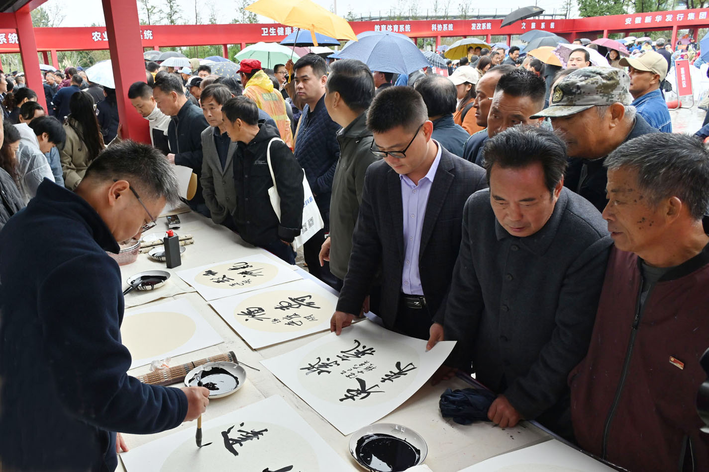 活動(dòng)現(xiàn)場,31家省、市“三下鄉(xiāng)”活動(dòng)參加單位組織宣傳、文化、科技、衛(wèi)生、教育、農(nóng)業(yè)、司法等領(lǐng)域?qū)<液蛯I(yè)志愿者,為當(dāng)?shù)厝罕娞峁┱咝v、科學(xué)普及、健康義診、農(nóng)技推廣、法律咨詢等服務(wù),文化文藝工作者為群眾輔導(dǎo)書法創(chuàng)作、展示非遺技藝,并獻(xiàn)上精彩文藝演出。