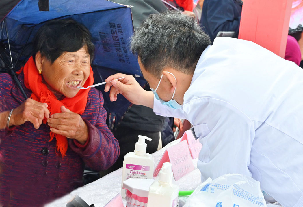 醫(yī)務(wù)工作者現(xiàn)場為群眾義診