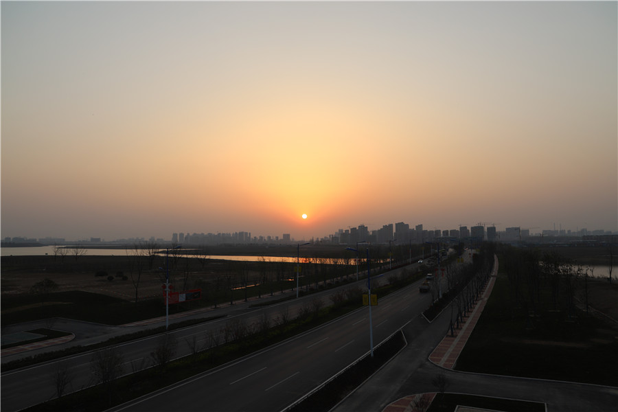 站在約4層樓高的觀景樓上,中湖景區盡收眼底。觀景樓橫跨一條寬闊的主路,路兩邊是明亮的路燈,據說這便是在社交平臺上非常火的網紅馬路。中湖景區即綠金中央公園,其中的“綠金”便來源于“綠水青山就是金山銀山”。其治理前為朱莊-楊莊礦因采煤而造成的塌陷區,規劃面積約1400公頃,按照國家4A級景區建設,按照城市宜居中心、景觀核心、生態綠心、濕地核心的定位,將景區打造為集生態保護修復、旅游休閑度假、歷史文化深厚為一體的高標準城市中央公園。