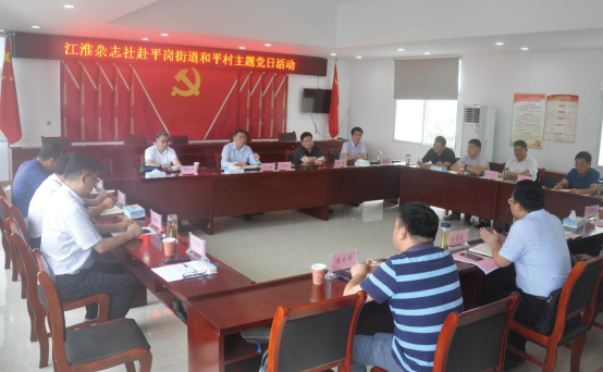 本網訊(記者 張耀東)6月23日,江淮雜志社赴六安市葉集區平崗街道和平村開展主題黨日活動,聽取基層一線干部作黨課報告。報告會由總編輯王玉斌主持,副總編輯周草、郭高啟,紀檢組長陳德友出席。