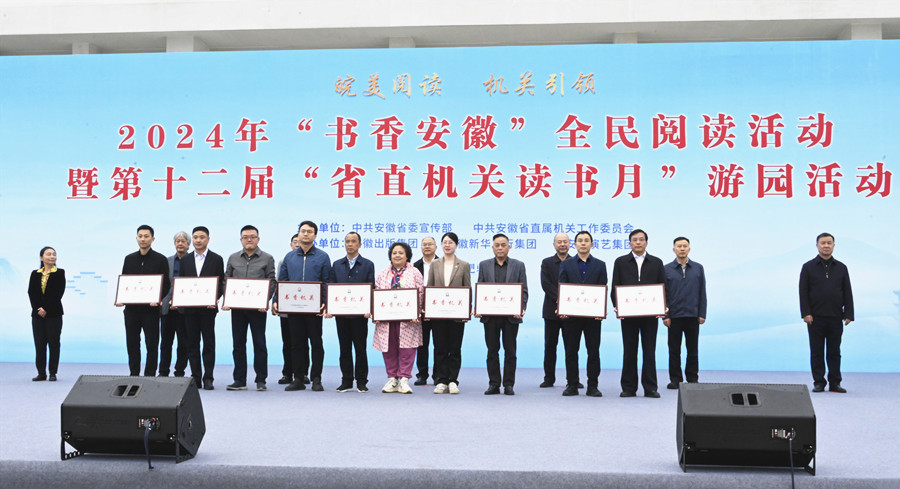 上午9點,“皖美閱讀 機關引領”主題活動正式啟動,為發(fā)揮學習典型的示范作用,引導機關黨員干部知學好學,現(xiàn)場分別對獲得命名表彰第二批省直機關黨組(黨委)理論學習中心組學習示范點和“書香機關”的各十家單位舉行了授牌儀式,活動現(xiàn)場安徽日報集團代表宣讀了“推進書香機關建設、深化全民閱讀活動”倡議。