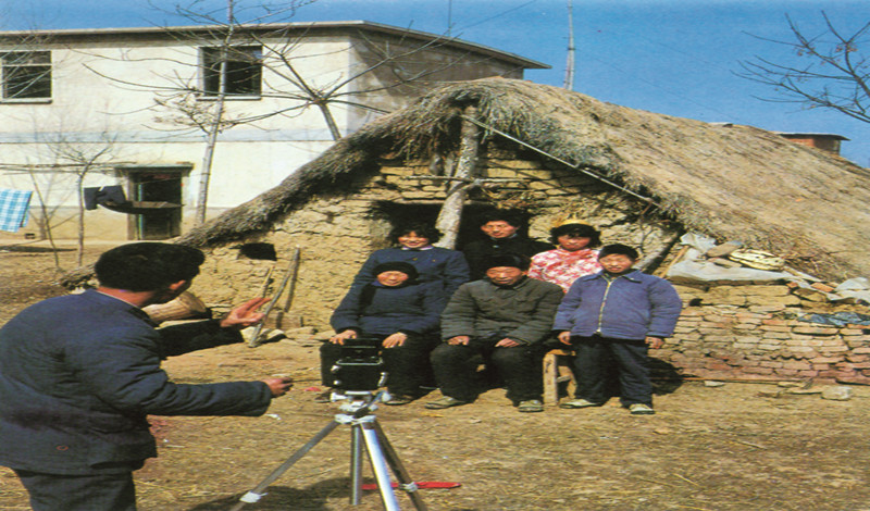 80年代,鳳陽小崗一家人在即將拆遷的茅草屋前合影