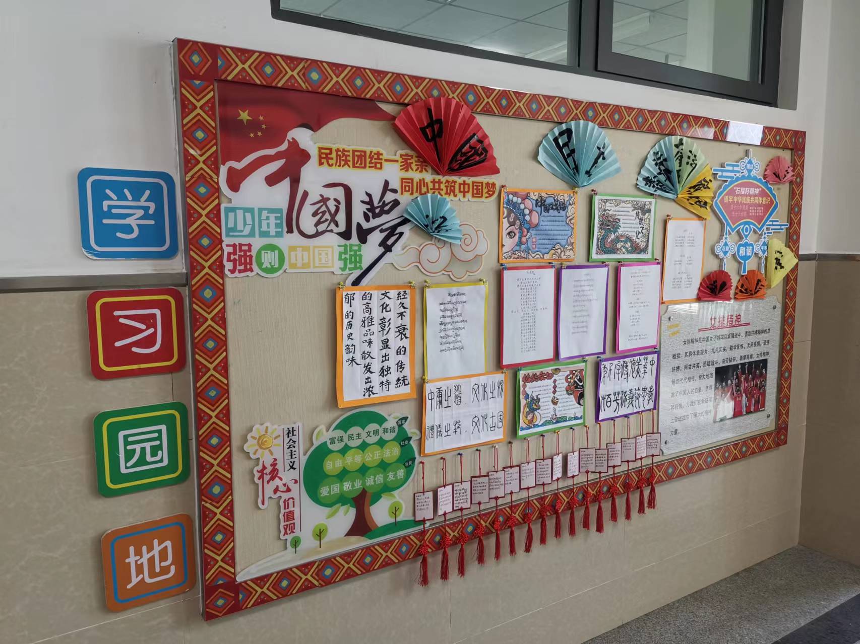 學校積極探索中學生中華民族共同體意識培育路徑,實現國家統編教材使用全覆蓋,每年赴上海、江蘇研學,開展“同上一堂課”等活動,增進各民族學生交往交流交融。此外,開設的以“新時代、新家鄉”為主題的思政課,讓孩子們通過家鄉發生的翻天覆地的變化,去感悟新時代的偉大變遷,激勵孩子們奮發有為、立志成才、建設家鄉、報效祖國。開設的書法課程也深受同學們的喜愛,教室走廊兩邊懸掛的是同學們自己創作的一幅幅書法作品,筆墨之間展現的是中華傳統文化在這里生根發芽。