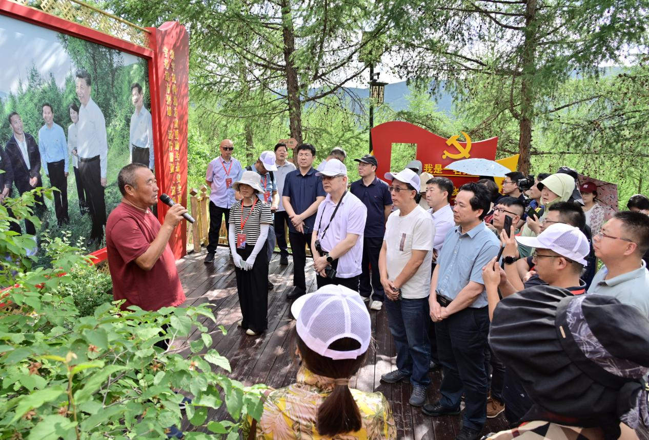 馬鞍山林場副場長柴樹嶺向采訪團講述習近平總書記考察林場時的情景
